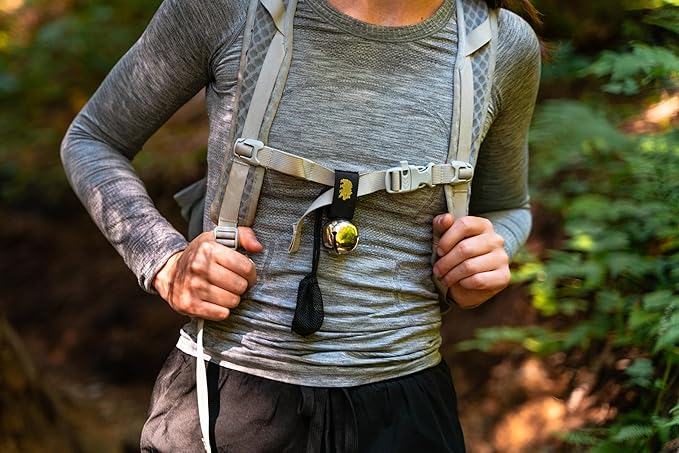 - Bell with magnetic silencer rings warning of your presence to bears and other animals when moving around, hiking, or walking outside