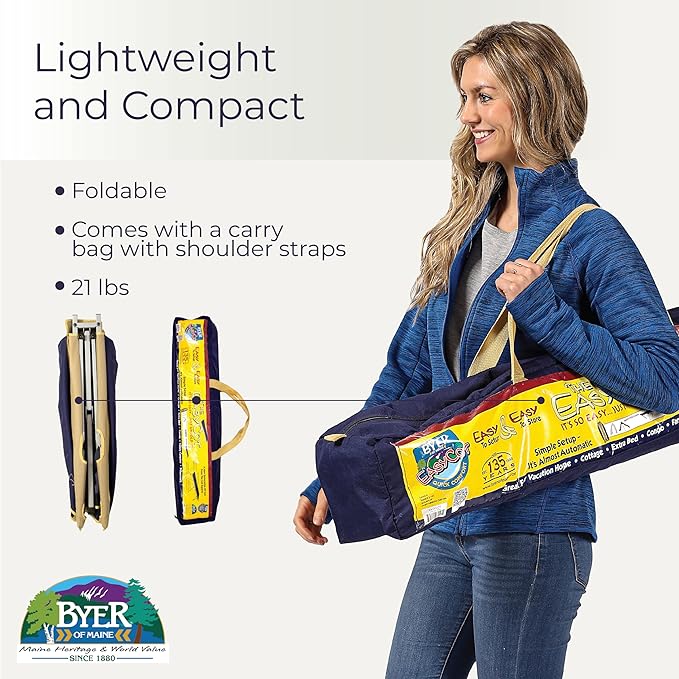 BYER OF MAINE Easy Cot - Extra Large Folding Cot - Heavy Duty for Indoor and Outdoor Use - Bed for Adults - 78”L X 31”W X 18”H - 330 lb Capacity
