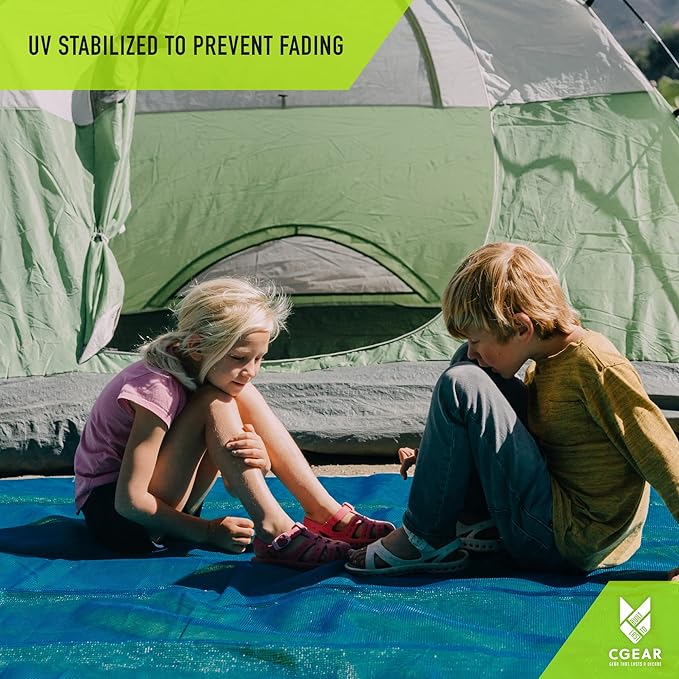 CGEAR Original Sand-Free Outdoor Rug Camping Mat - Water-Resistant & Anti-Fade Material - Military-Grade - Reversible Design - Area Rug for Beach, RV, & Picnics - Includes Travel Bag