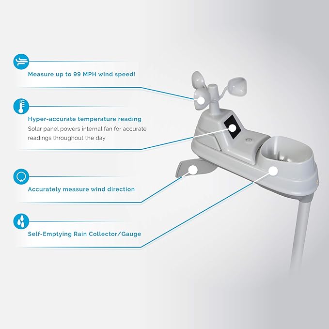 - Comprehensive Weather Information: One of the best weather stations, receive over 55 data points that allow you to monitor historical data, the heat index, dew point, feels like temperature, pressure trends with trend arrow, and more