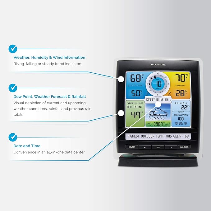 - Real-Time Weather Conditions: Look no further for the perfect indoor and outdoor weather station! Wirelessly receive readings for indoor/outdoor temperature and humidity, wind speed/direction, barometric pressure, and rainfall directly to your home weather station