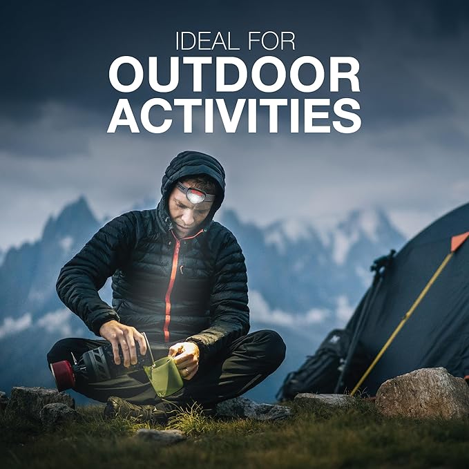 - [Durable LED Head lamp]: 400 lumen headlamp led light 4x brighter than the standard LED technology with 3-hour runtime on high, 35-hour runtime on low, 85-meter beam distance, IPX4 water-resistance and impact-resistance up to 1 meter