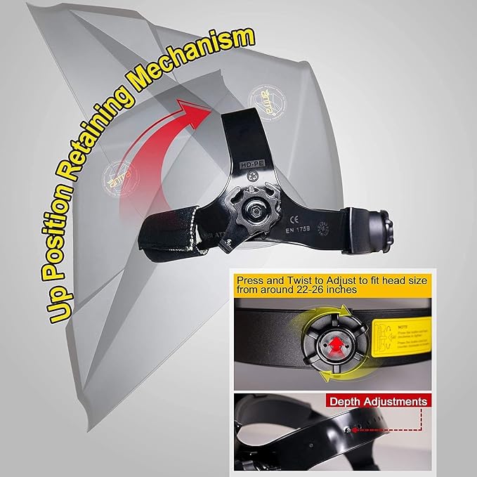 - 【Adjustable Fit】Customizable headgear and ergonomic design provide a comfortable fit for hours of fatigue-free welding, ensuring maximum productivity.