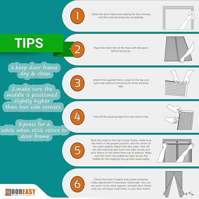 - √√DOOREASY Magnetic Screen door has 28pcs totally strong magnets sewn into seams symmetrically, no break up or falling off, offering instant seamless magnetic screen close right behind. No unexpected pinching for kids with the magnetic screen door mesh, never hurry for opening and closing the door for pets. Healthy and Eco-friendly.