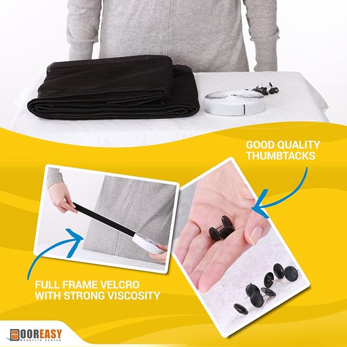 - √√DOOREASY Magnetic Screen has 28pcs totally heavy magnets sewn into seams symmetrically, no break up or falling off, offering instant seamless top-to-bottom seal right behind. No unexpected pinching for kids with the screen curtain, never hurry for opening and closing the door for pets. Healthy and Eco-friendly.
