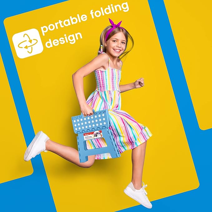 - CARRYING HANDLE - Ergonomic carrying handle is designed for easy folding and carrying. Just lift the handle, it will fold easily and quickly in a split second with only one hand. The step stool’s handle magically appears when the stool is folded flat. Allowing you comfortably carry it around so you can place it where they need it.