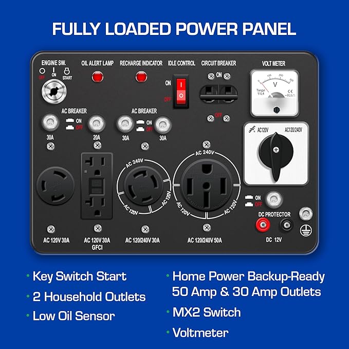 - The XP12000EH comes equipped with a wide variety of outlets, including a transfer switch-ready 50 amp outlet. This generator features our MX2 Power Boost, which doubles the 120V power for appliances and RVs