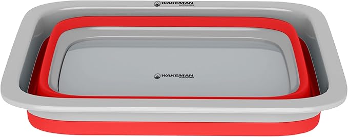 Collapsible Cleaning Caddy - Portable Multi-use Wash Basin, Dish Tub, or Ice Bucket with 7.27L Capacity for Camping and Tailgating by Wakeman (Red)