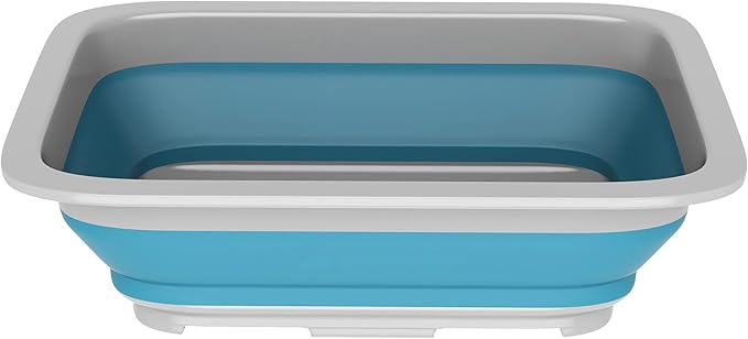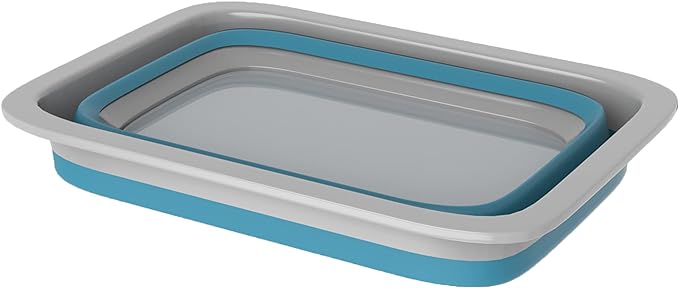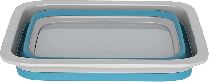 - PRODUCT DETAILS - Materials: PP/TPR (Plastic/Plastic Rubber). Dimensions: (L) 14.75" x (W) 10.75" x (H) 5"; Collapsed: (H) 2". Capacity: 7.27-Liters. Color: Blue.