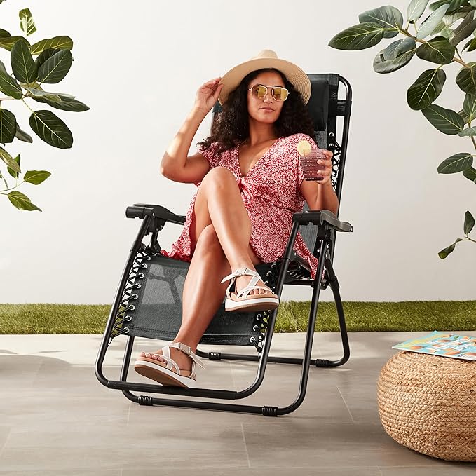 - Adjustable zero-gravity outdoor chair in Black offers a weightless feel for optimal relaxation