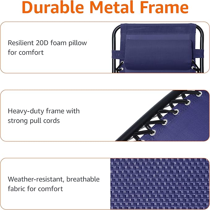 - Adjustable zero-gravity outdoor chair in Navy Blue provides a stress-free weightless feel for optimal relaxation