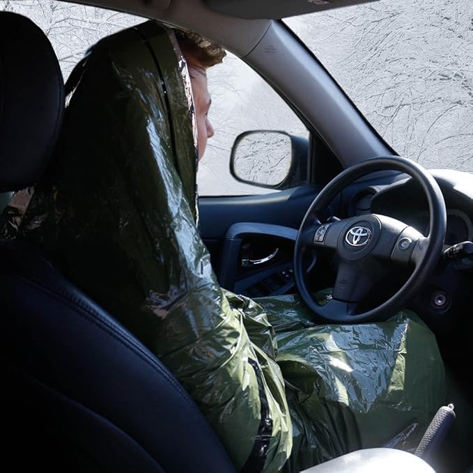 - ULTRA LIGHTWEIGHT COMPACT SLEEPING BAG: Made out of ultra-lightweight HeatEcho reflective polyester film, this thermal survival blanket sleeping bag weighs just 4.8 ounces. It also compresses into a tiny oversized stuff sack, so you can reuse and carry our emergency sleeping bags with your survival kit everywhere you go. Use as a sleeping bag liner and raise your body temperature by 20°!