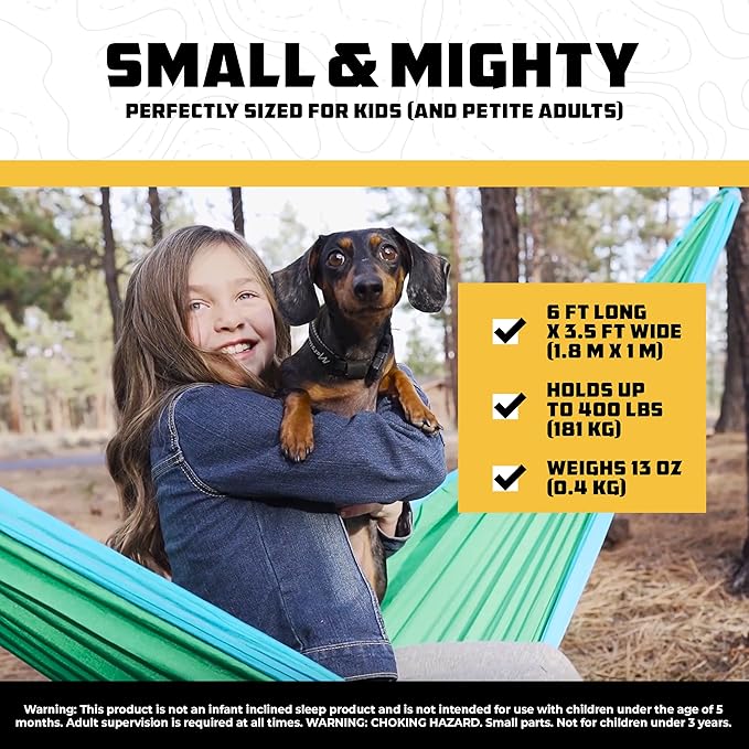 - Gift-Ready for Any Adventurer – This compact camping gear hammock in a bag makes a fun gift for young explorer outdoor lovers, and for kids of all ages to use anywhere - from the backyard to your next camping trip!