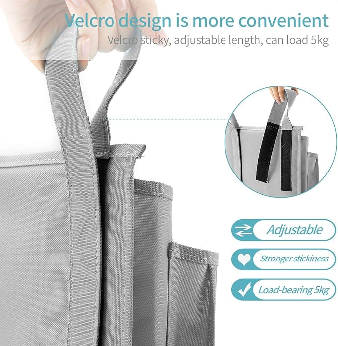 - GOOD QUALITY – Made of 600D Waterproof Oxford Fabric with reinforced stitching, easily attaches to bed rail using three adjustable heavy duty velcro straps, keep the bedside caddy securely in place, durable enough to withstand heavy weight. Easy to use, no assembly required.