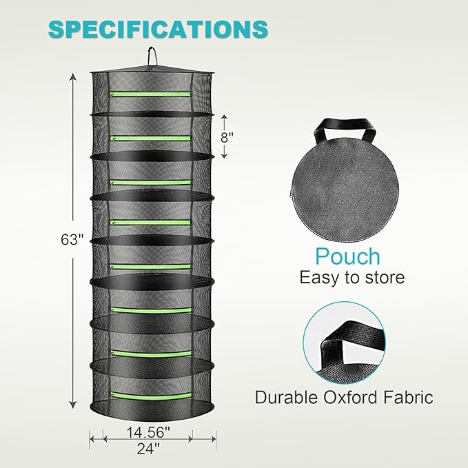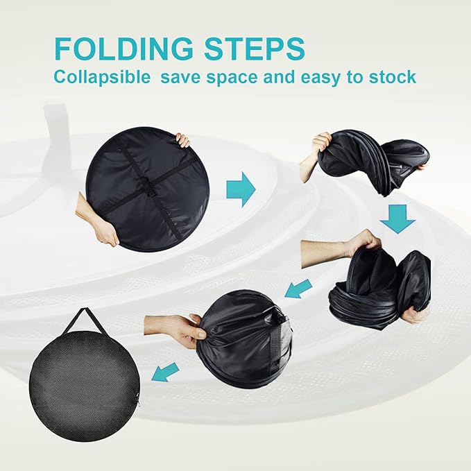 - 【Product Size】8 Layers 24 inches in diameter, black zippered 【Material】Made of breathable polyester mesh for better air circulation and even drying of herbs, waterproof top 【Product Design】The zipper closure design effectively protects flowers, herbs, tea, fish, nuts and even clothes from drying and prevents wind, birds and other disturbances.Folding design,simultaneous design of each layer is designed with a built-in steel wire ring,provides sturdy support when placing items 【Easy to Use】Can be folded into small packages for easy storage, perfect for indoor and outdoor use 【Note】 Store the product in a small handbag and open it with both hands to avoid popping open and getting hurt