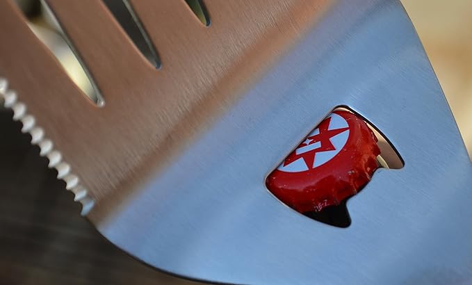 - BOTTLE OPENER included on Spatula! SHOW OFF your multitasking skills. THE SEASONED GRILLER CHALLENGE: Flip your burger, grab and open your beer while and burger is in flight, gracefully catch your burger with your SEASONED GRILLER Spatula and place it back on your grill. Email us a video and you'll receive a FREE SEASONED GRILLER GRILL MAT.