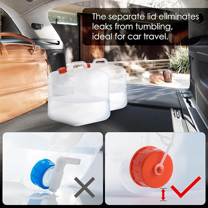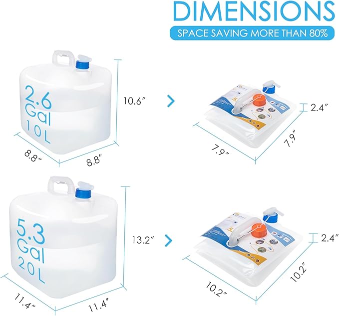 Collapsible Water Container Jug with Spigot, 2 Packs 5.3 Gallon BPA Free Camping Water Storage Carrier for Outdoor Hiking Backpacking & Emergency Survival Kit, Foldable Portable Canteen