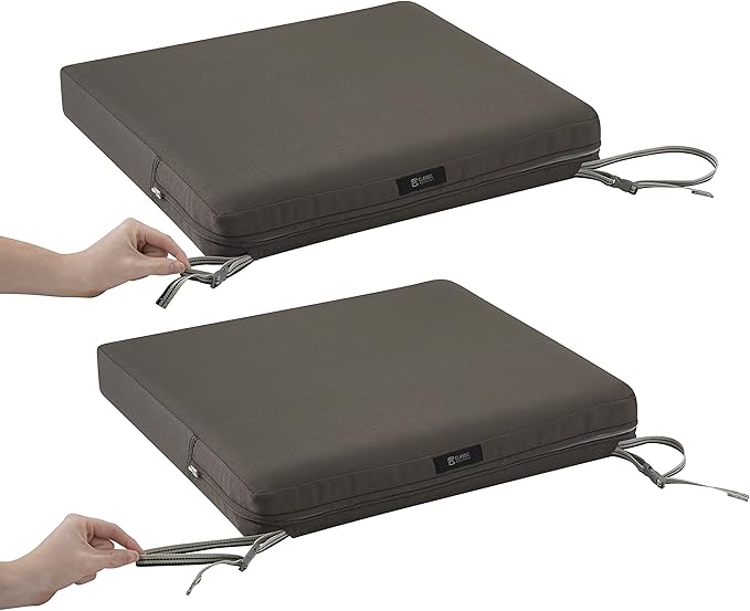 Classic Accessories Ravenna Water-Resistant 19 x 19 x 3 Inch Patio Seat Cushion, Dark Taupe, Chair Seat Cushion