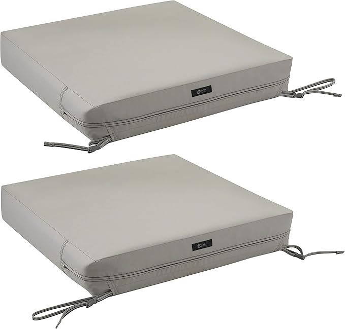 Classic Accessories Ravenna Water-Resistant 23 x 23 x 5 Inch Square Patio Seat Cushion Slip Cover & Foam, Mushroom, Lounge Chair Cushion