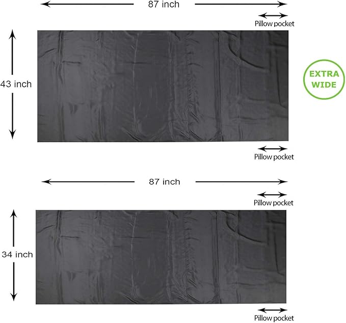 - EXTRA WIDE AND SUPER LIGHTWEIGHT: Two sizes for option: 87”x43” is an extra wide size, which is about 9” wider than a normal single liner. There’s generous space for the tall people to move freely. It weighs only 6.3oz. (180g); The 87"x34" liner weights 5oz. (140g), which is a comfortable size for one person. The liner is compacted in a tiny ripstop nylon stuff bag. With an attached hook on the carry case, you can link it up with the liner after taking the liner out, avoid losing the stuff bag.