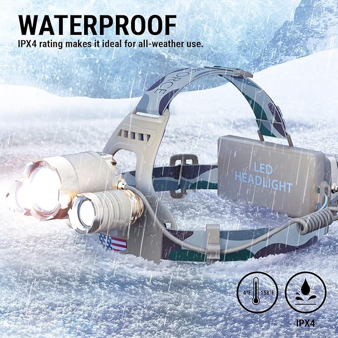 - ALL-WEATHER READY – DanForce head lamps are built to withstand all work and weather conditions, from extreme heat to bone-chilling cold. Plus, the air-tight rubber sealing protects the LED headlamp rechargeable battery from dust, ice, and water, for ultimate dependability.