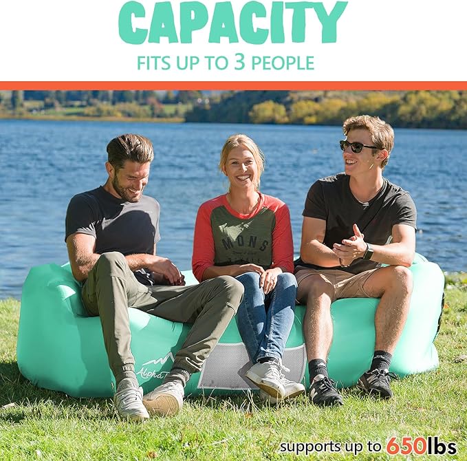 - Easy Inflation Design -- No pump required for AlphaBeing air lounger. Just a few scoops of air and this inflatable lounger is ready to hangout in. This is a must-have for any BBQ, beach, Hhke, concert, or camping trip. Folding to 12"x 8"x 4"and fitting in its own carrying bag with shoulder strap, this air sofa is ready to be taken anywhere with you.