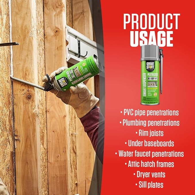 - PUT FOAM WHERE THEY ROAM. Take on common areas where nuisances get in such as PVC pipe penetrations, around electrical cable lines, water faucet penetrations, attic hatch frames, rim joists, sill plates and more.ates and more.