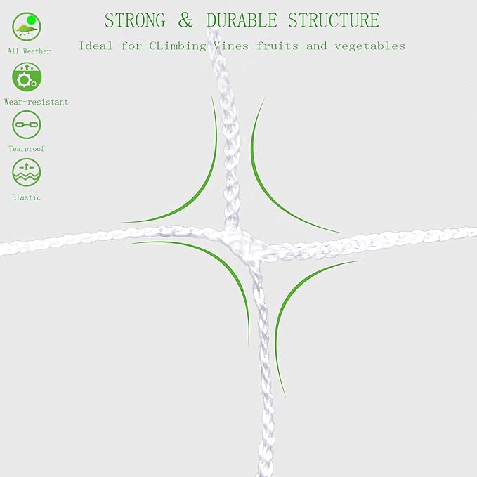 - 1.【QUALITY】Trellis Netting ,White ployester mesh has outstanding durability. Breaking strength supports extremely heavy crop loads.Prevent animals from damaging the plants.