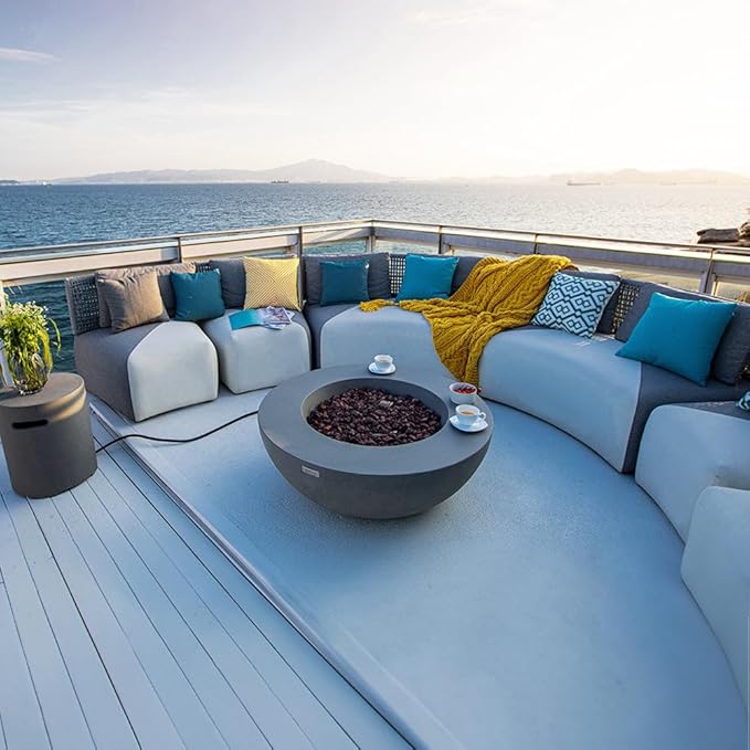 Elementi Lunar Fire Bowl Outdoor Fire Pit Table 42 Inches Round Firepit Concrete Patio Heater Electronic Ignition Backyard Fireplace Cover Lava Rock Included Liquid Propane