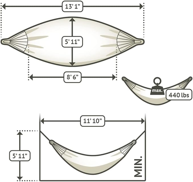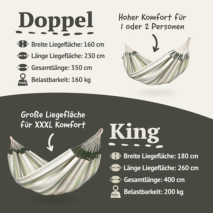 - ** Ideal Sizes: Double for 355 lbs capacity; King for 440 lbs, perfect hammock for 2 persons.