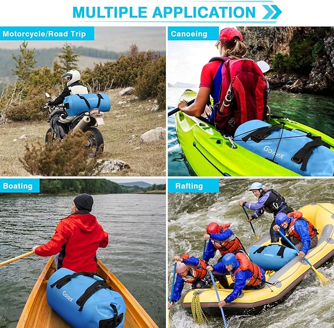 - Multiple uses: With its effective waterproofing, this waterproof dry bag is suitable for a wide range of outdoor activities, such as kayaking, paddleboarding, boating, motorcycle riding, rafting, fishing, diving, and other adventures
