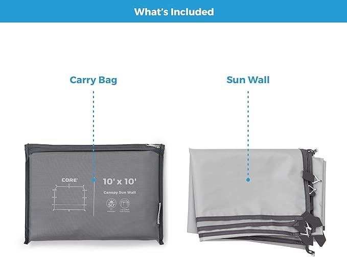 - What's In The Bag: (1) 10’ x 10’ sun wall and carry bag.