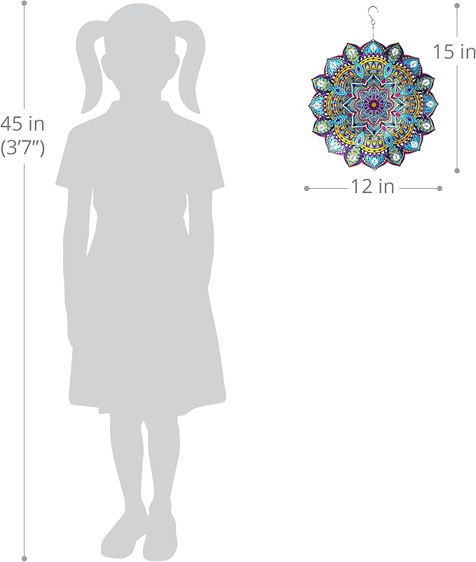 - MANDALA WIND SPINNER: Add a burst of colors, visually striking decoration, and a touch of zen to your home garden area with our Starburst Mandala Hanging Wind Spinner. Meticulously crafted with intricate laser cut metal and elegant beaded accents, our wind spinner features a stunning mandala design and easily fans out with a gentle breeze, making the wind catcher perfect for adding decoration to your outside patio, porch, lawn, yard, pathway or walkway area