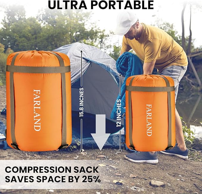 FARLAND Sleeping Bags 30℉ for Adults Teens Kids with Compression Sack Portable and Lightweight for 3-4 Season Camping, Hiking,Waterproof, Backpacking and Outdoors