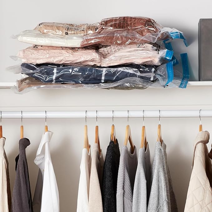 Amazon Basics Vacuum Compression Space Saving Storage Bags with Hand Pump for Travel, Multiple Sizes for Clothes and Blankets, Clear, 12 Pack (3 Small, 3 Medium, 3 Large & 3 Jumbo)