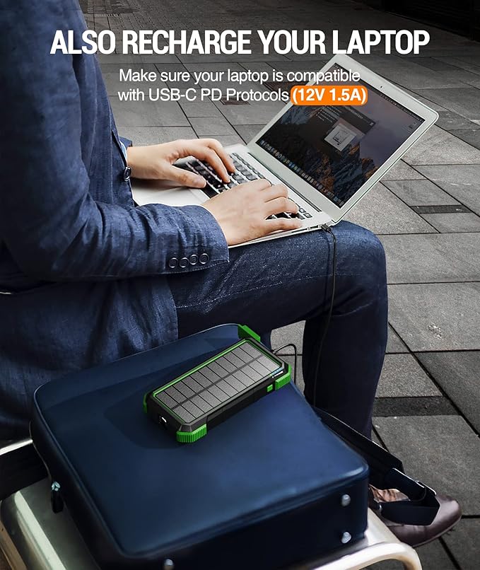 - PD18W and QC3.0 Fast Charging: Equipped with PD & QC3.0 fast charging ports, the solar portable charger supplies Max 18W output, greatly shortening the time of recharging your devices. The unique PD 18W USB-C output is also compatible with laptops that support PD protocol.