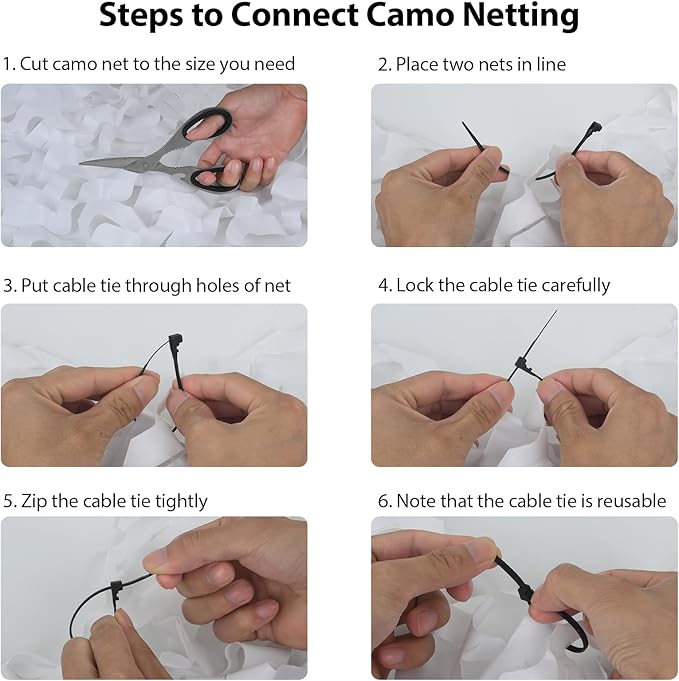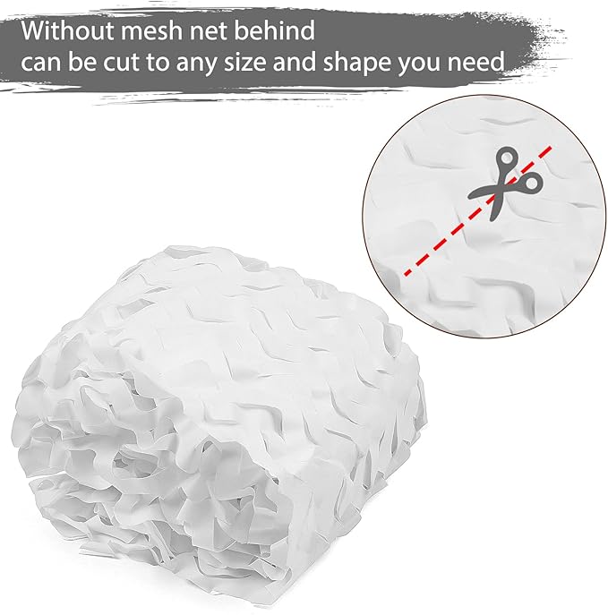 • Free Cutting: Camouflage netting can be easily cut to any size; you can use the included zip ties to fix it. Camo net can match with a variety of background colors, so you can observe the surrounding terrain well, providing maximum concealment in the field