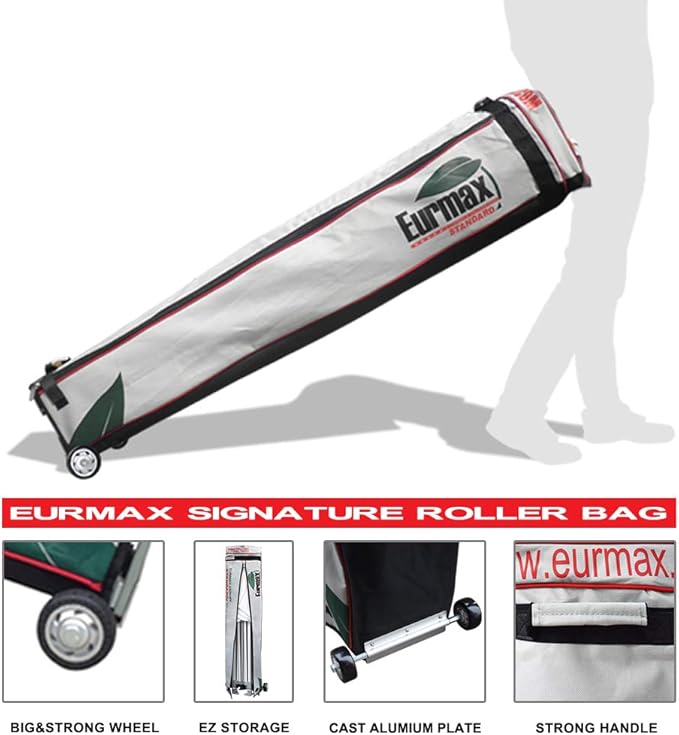 Eurmax USA 10 x 10 Pop up Canopy Commercial Tent Outdoor Party Canopies with 4 Removable Zippered Sidewalls and Roller Bag Bonus 4 Canopy Sand Bags & 24 Squre Ft Extended Awning(Red)