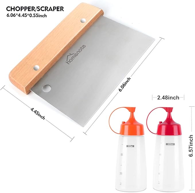 - 🔥【Must Have Griddle Accessories】This set also include 1 chopper/scraper to dice food and scrape griddles clean. 2 squeeze bottles for liquids oil or water, 1 Homenote exclusive receipe and Bonus 1 storage bag.