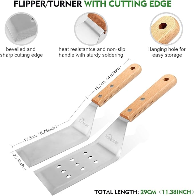 - 🔥【Enjoying for Taste!】The HOMENOTE griddle tool kit is the perfect companion to cooking amazing food that will please everyone at your BBQ, weekend party or your everyday meals.