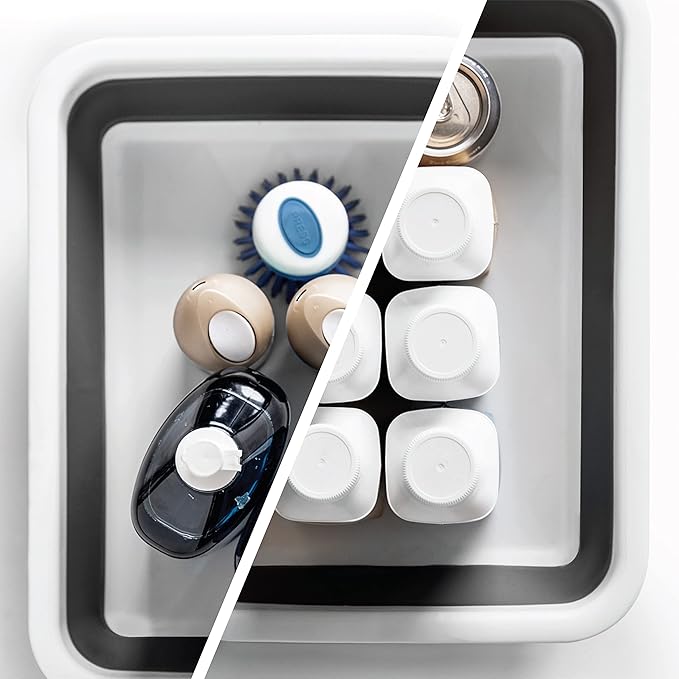 - Conveniently Portable: Flexible material allows the wash basin to collapse to 1/3 its original height when not in use to efficiently store out of site and keep your sink space looking tidy.