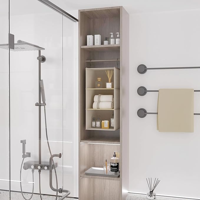 - Dimensions: The organizer measures 11.8'' W x 11.8'' D X 28'' H (Hooks Included). Each unit is 11.8'' W x 11.8''D x 7.9''H. 3 shelves will meet your storage needs where is placed in short wardrobe or in camper closet