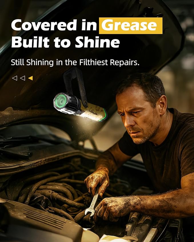 - 【Magnetic Led Worklight with 240° Rotating Bracket】The bracket rotates 240°, letting you direct the beam exactly where it’s needed. Perfect for hands-free lighting during engine inspections, garage projects, or when working in confined spaces. The sturdy support bracket features a built-in magnet at its base, allowing you to securely attach the work light to any metal surface—like a car hood or tool cabinet.