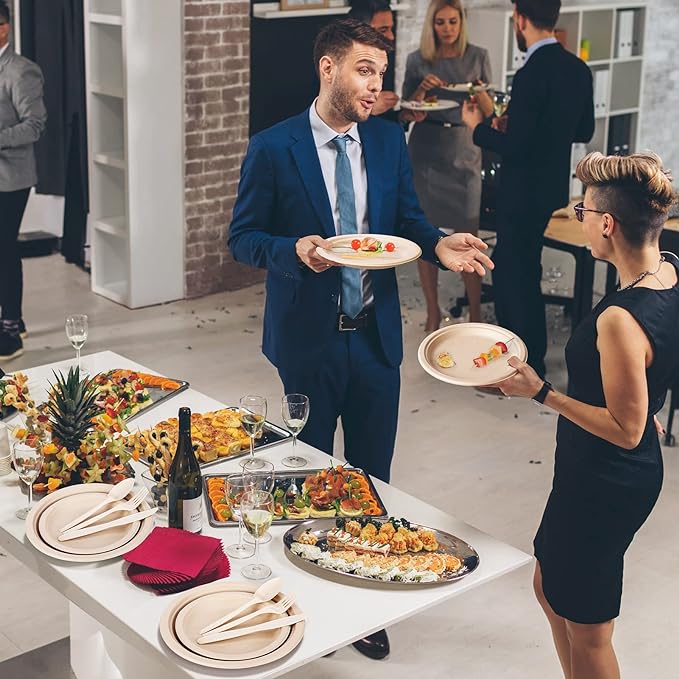 - Occasions: These biodegradable plates and utensils are perfect for a variety of occasions, including family meals, weddings, Christmas parties, birthdays, picnics, camping trips, and other special events. With this set, you can free yourself from the burden of dishwashing