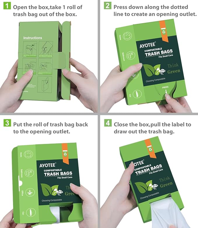 - No smell & Eco Trash Bags: We promote environmental small garbage bags which are unscented, non-toxic and harmless for your health. The compost bags 1 gallon controls the odor very well. The thoughtful box design helps you easy to store and carry