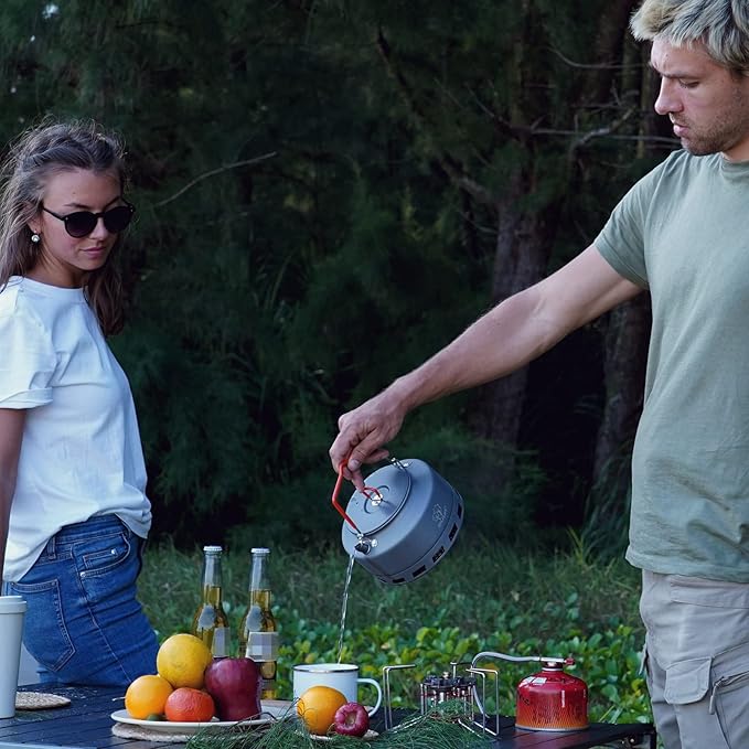 - 【Complete 1-2 Person Cooking Pot】1.6L capacity perfect for 1-2 persons.This camping tea kettle compatible with most outdoor stoves,only about 3 to 5 minutes later, you can enjoy your steaming hot cup of coffee or tea.