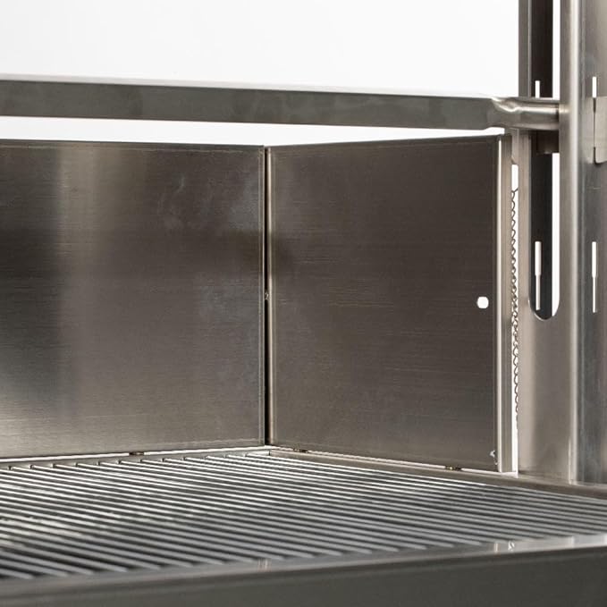 - HIGH-EFFICIENCY WINDSCREEN: Features a reflective stainless-steel windscreen that directs heat away from the coal to your meat, cutting down on cooking time and saving coal.