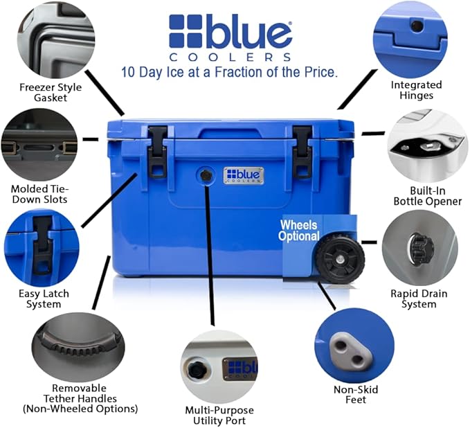 - READY. SET. JOURNEY…: The Blue Coolers 60 Quart Ice Vault will hold up to the toughest abuse due to the best in class durability. Whether you need to simply keep the sun away at a soccer game, or need a cooler than can withstand bears, bugs and the wild outdoors, Blue Coolers camping cooler will get it done.