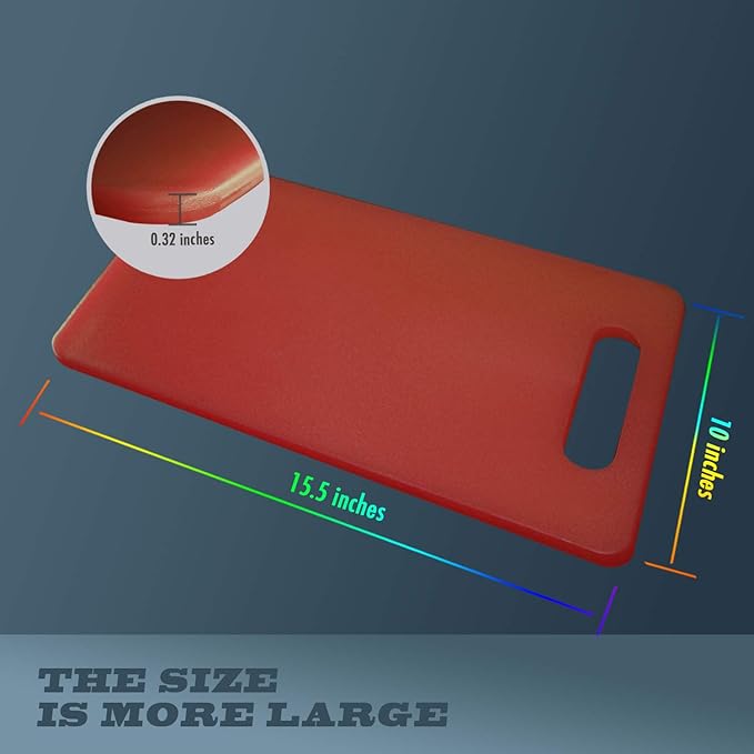 Fotouzy Plastic Utility Cutting Board with Handles, Food Safe PP Material, BPA Free, Dishwasher Safe, Thick Chopping Board, Large Size, Easy Grip Handle, for Kitchen (Red),15.5 x 10"