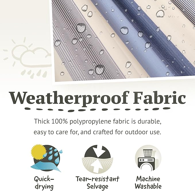 - Durable Comfort: Sturdy 100% polypropylene fabric, weather-resistant, with high count suspension cords.